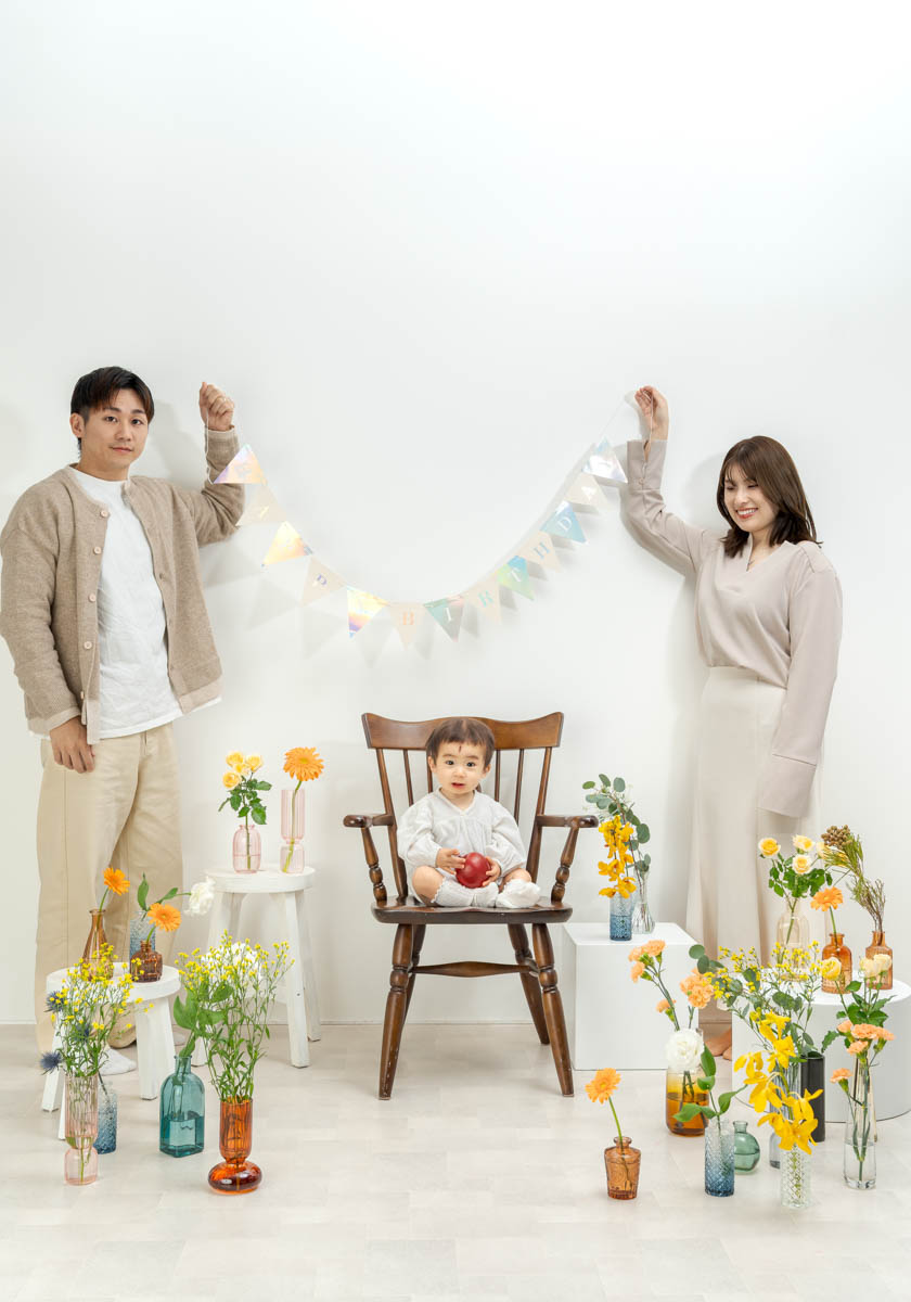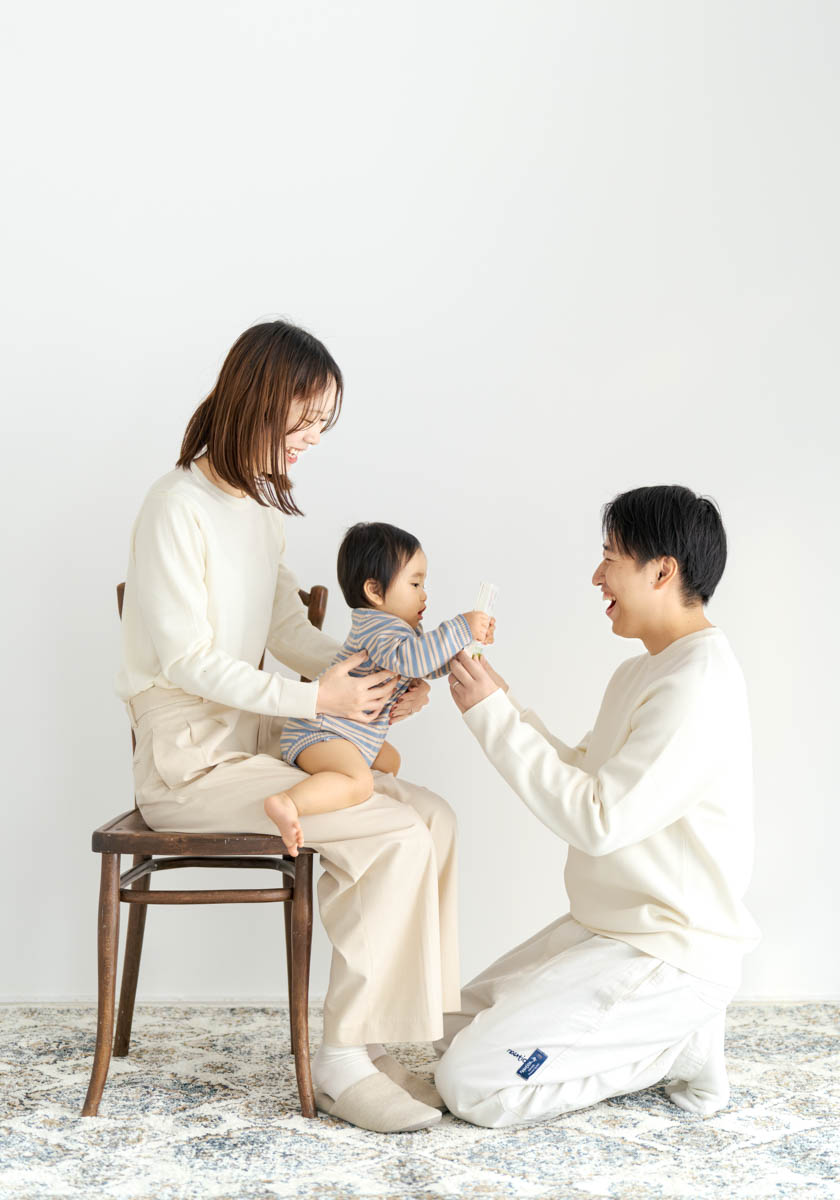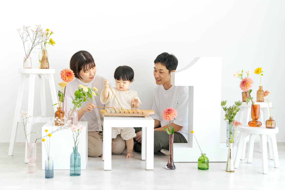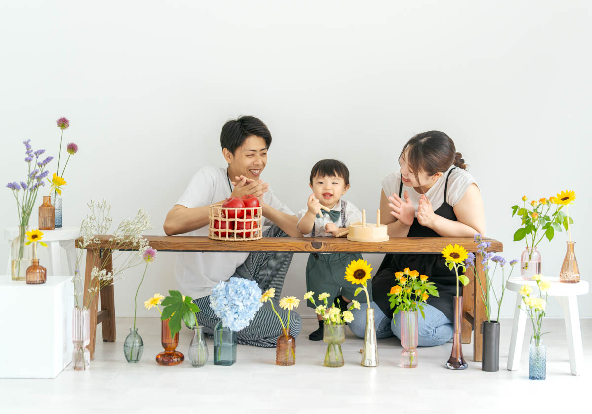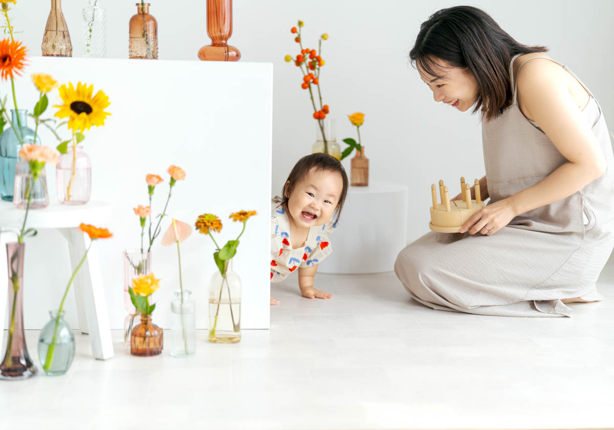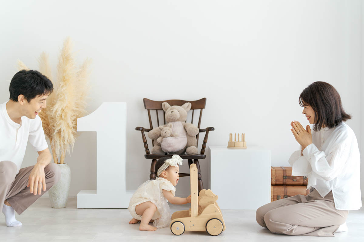1歳のお誕生日が初めての撮影という方も多く、不安に感じるかもしれませんが、実はとても撮りやすい時期です。ご家族の大切な節目を、自然であたたかな形に残せるよう撮影いたします。