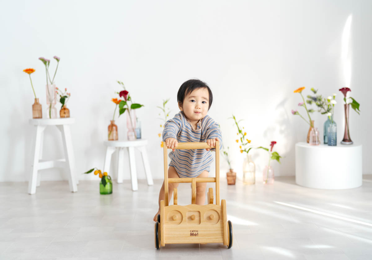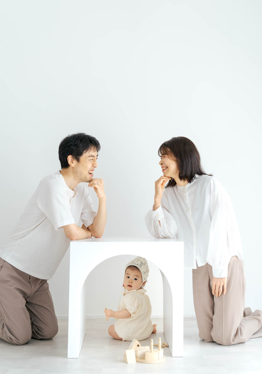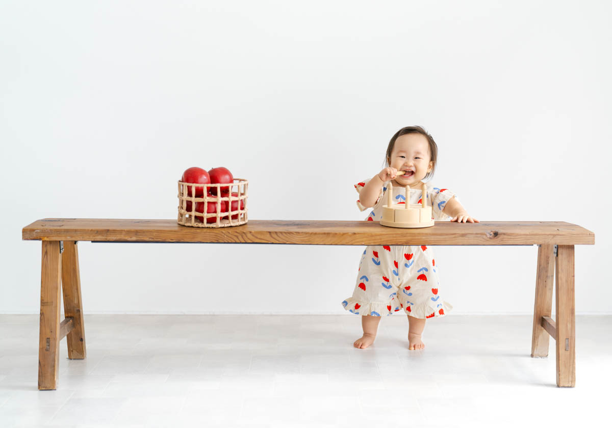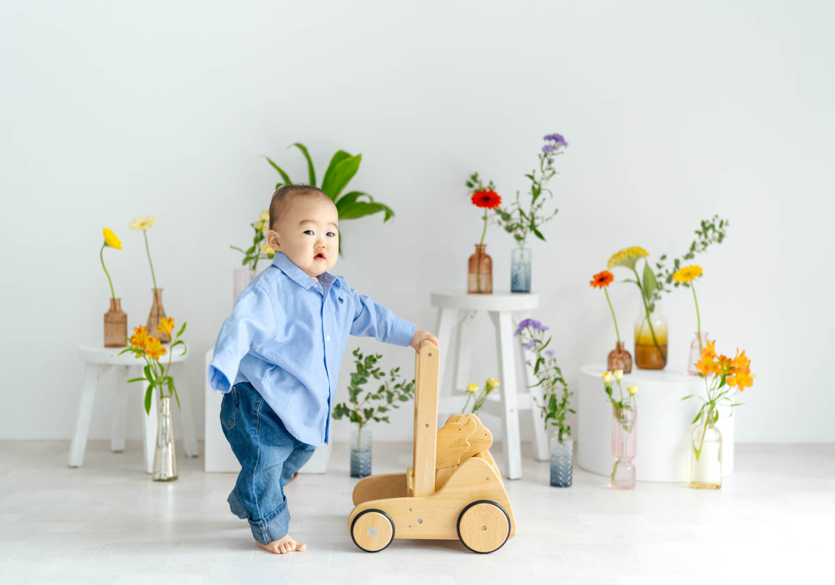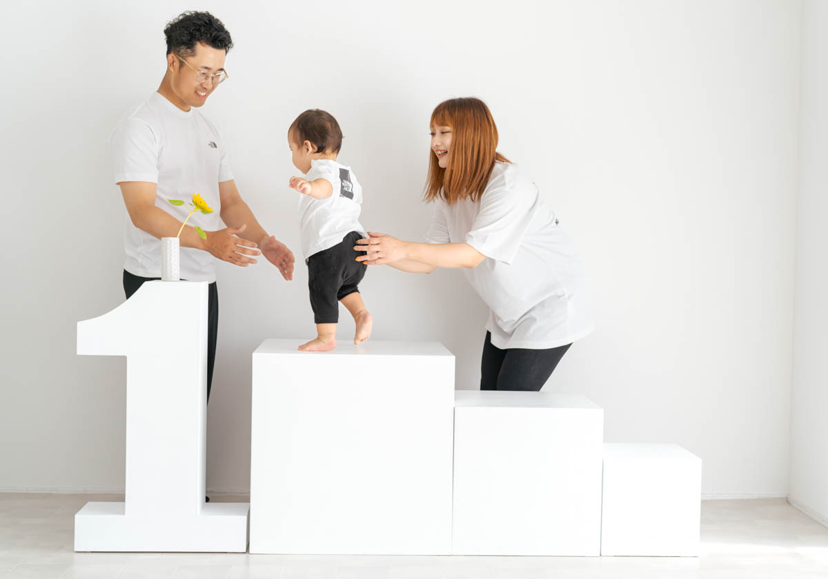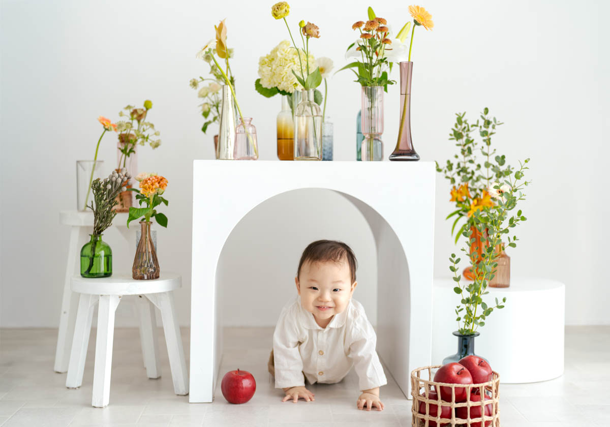 1歳のお誕生日が初めての撮影という方も多く、不安に感じるかもしれませんが、実はとても撮りやすい時期です。ご家族の大切な節目を、自然であたたかな形に残せるよう撮影いたします。