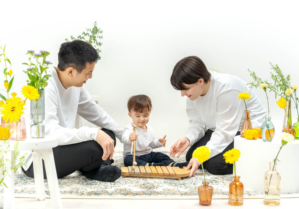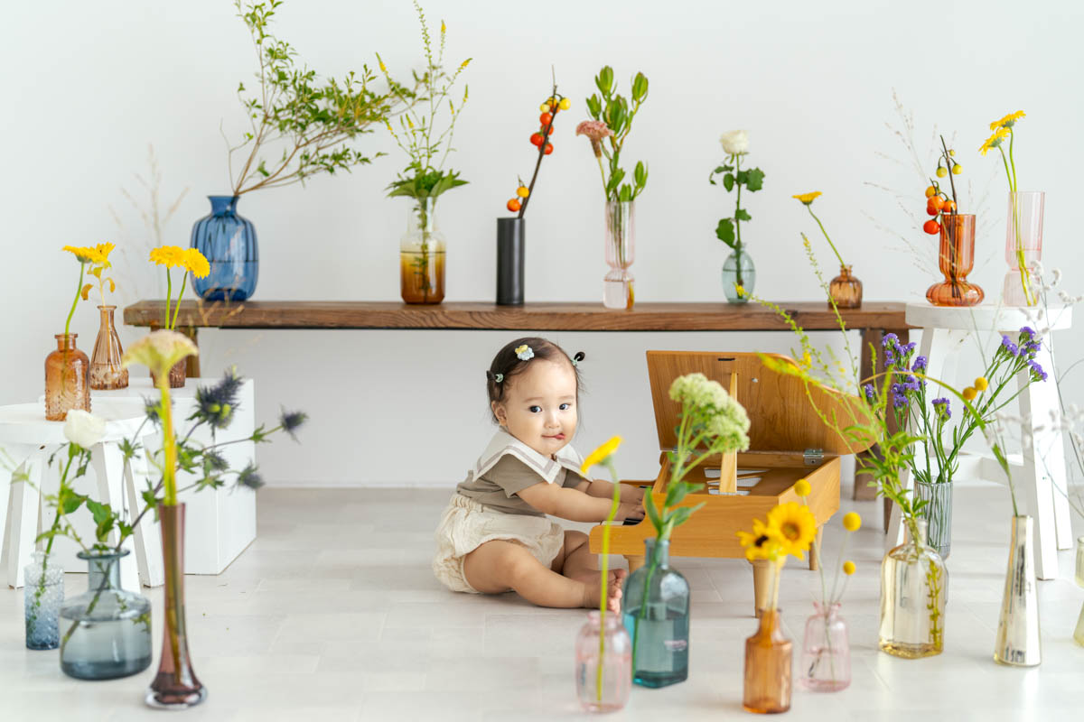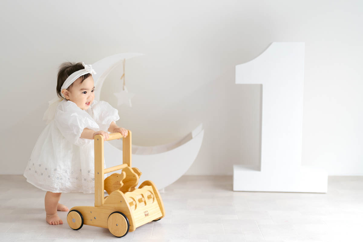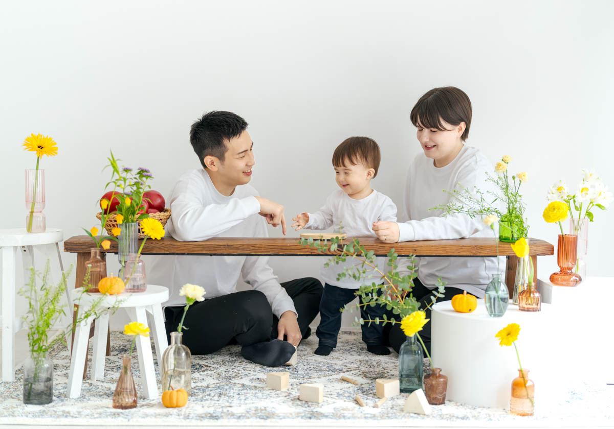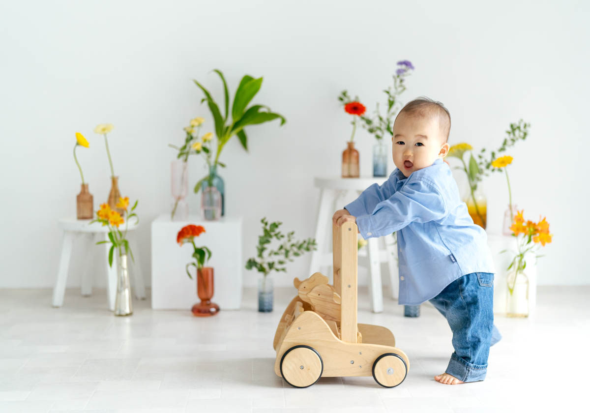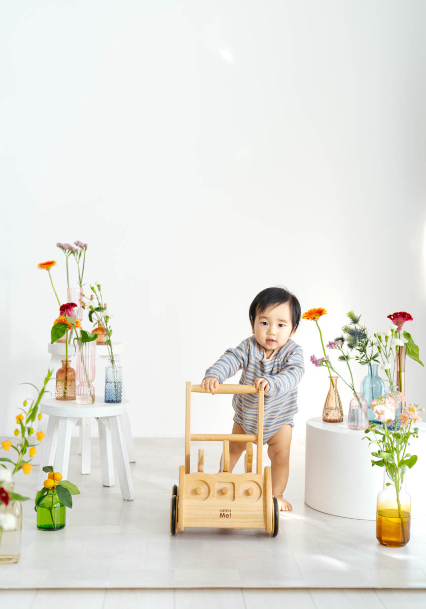 1歳のお誕生日が初めての撮影という方も多く、不安に感じるかもしれませんが、実はとても撮りやすい時期です。ご家族の大切な節目を、自然であたたかな形に残せるよう撮影いたします。