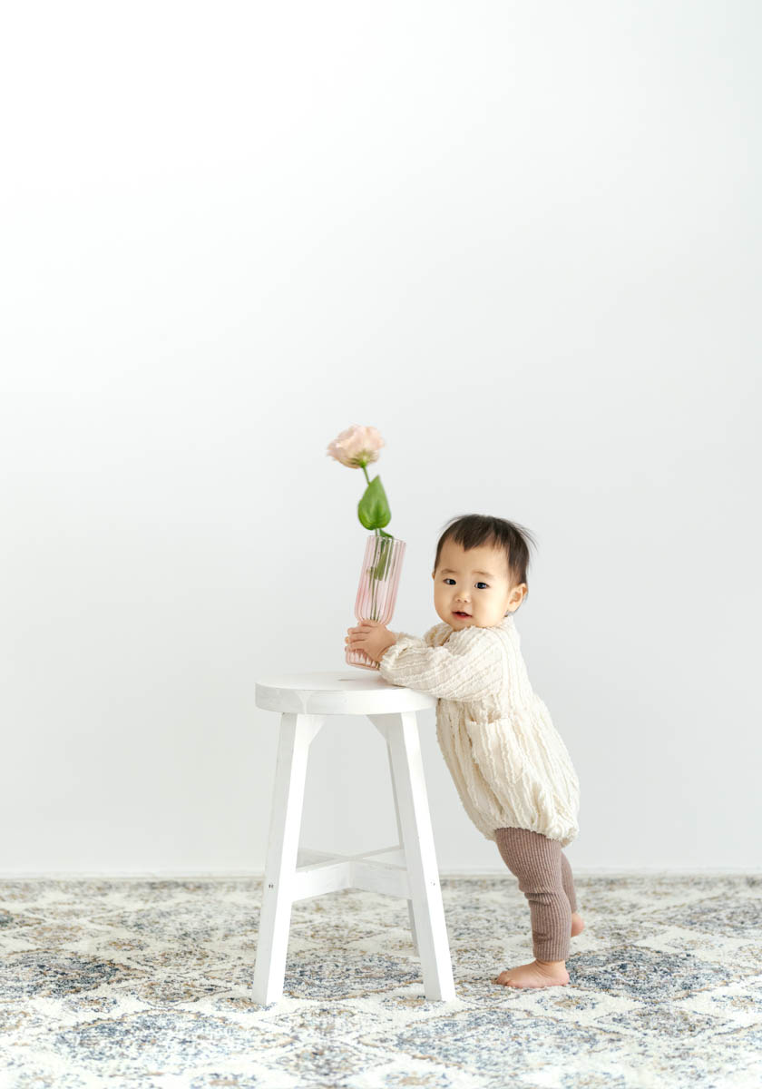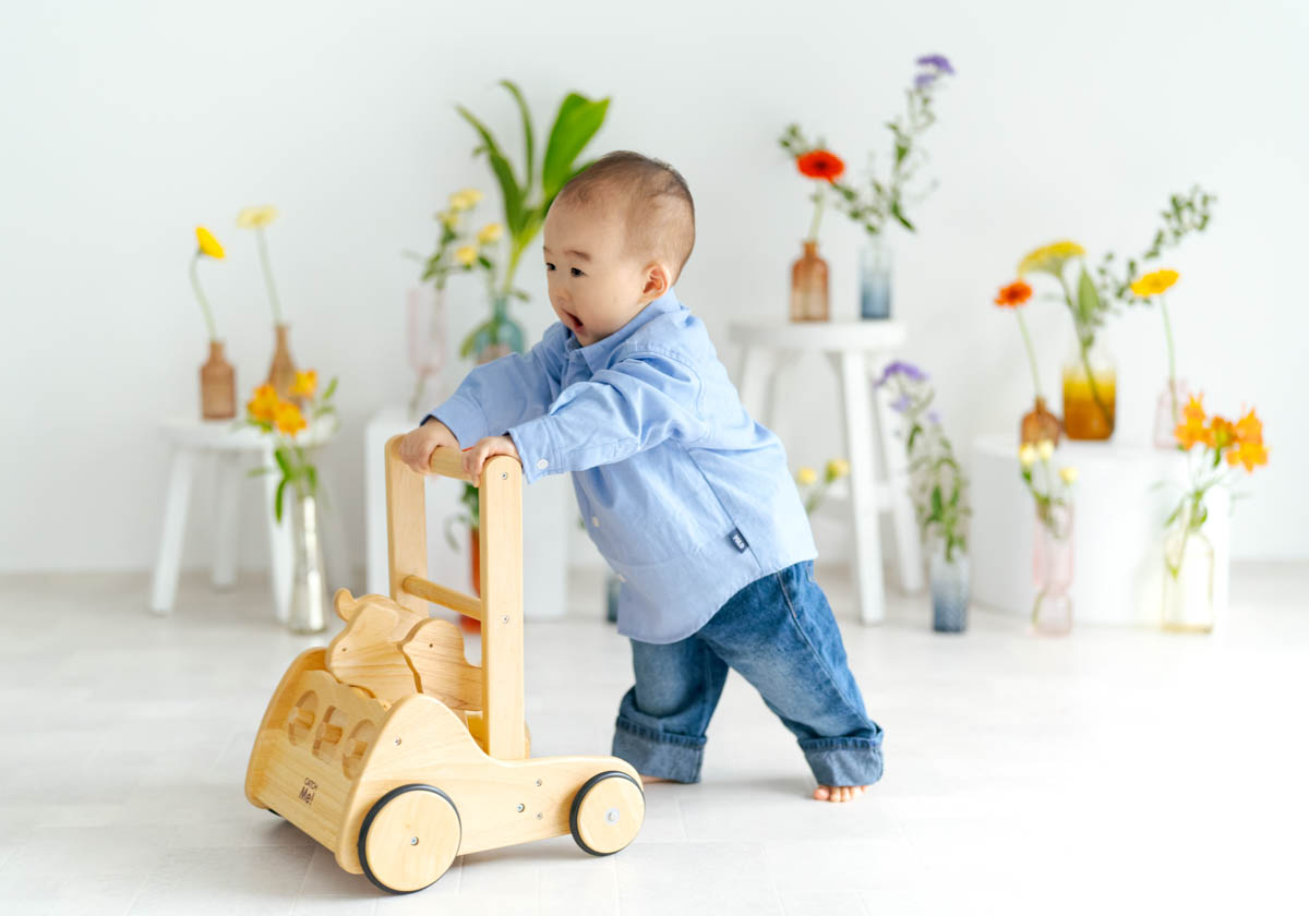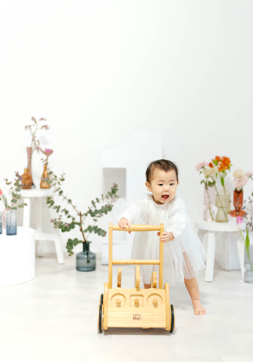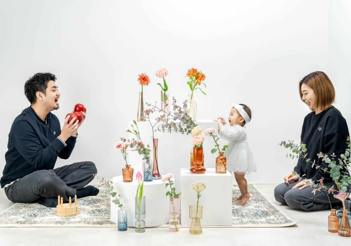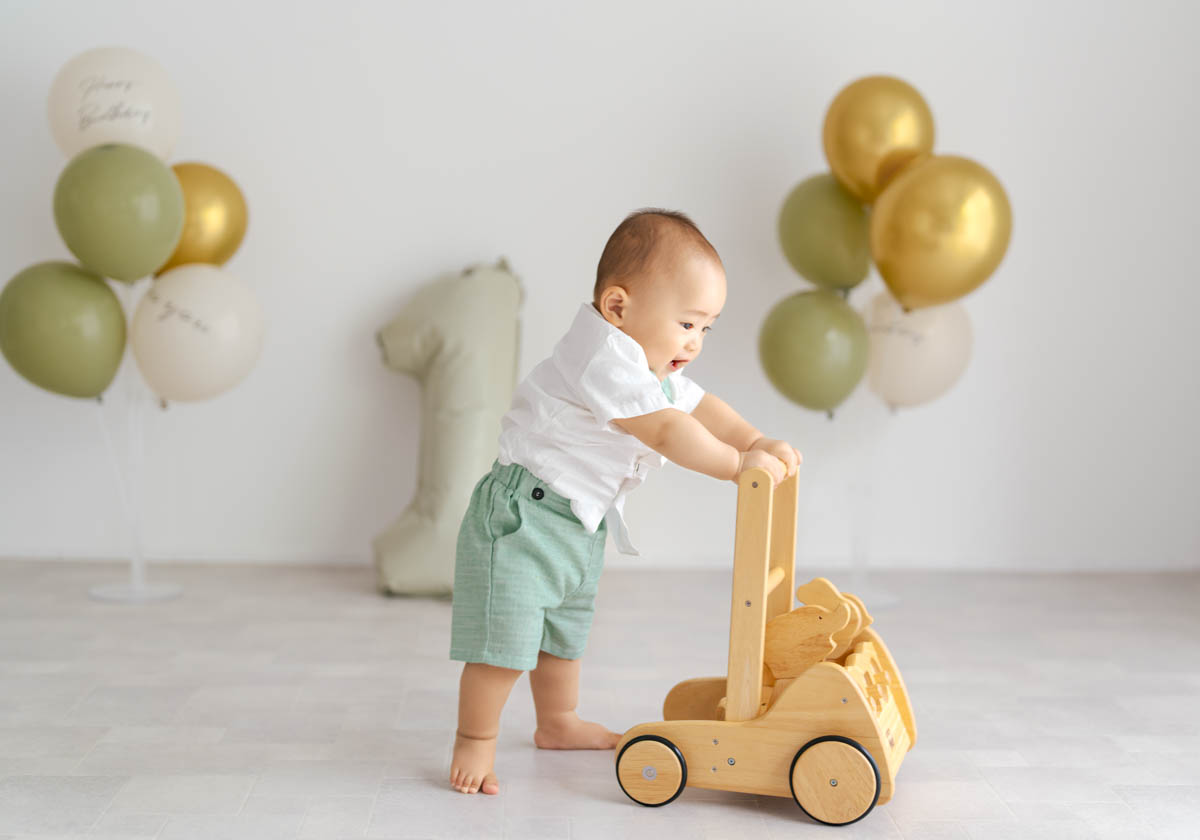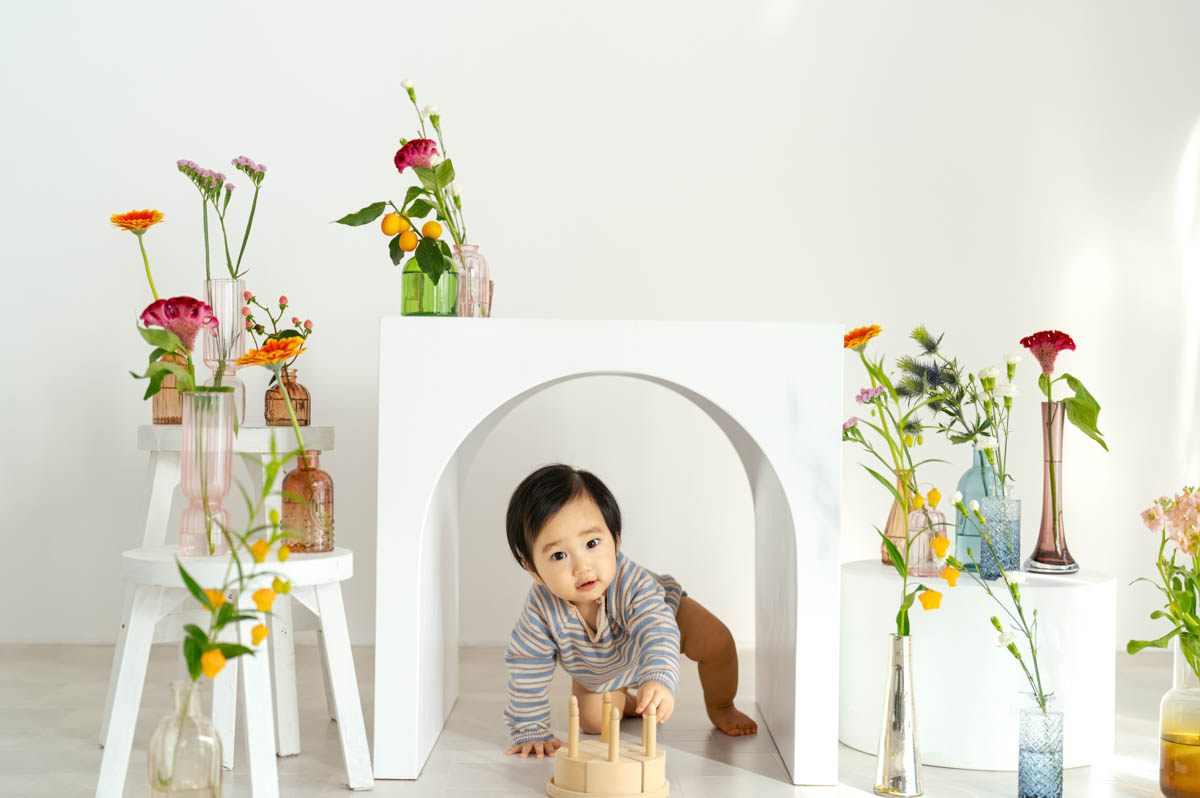 1歳のお誕生日が初めての撮影という方も多く、不安に感じるかもしれませんが、実はとても撮りやすい時期です。ご家族の大切な節目を、自然であたたかな形に残せるよう撮影いたします。