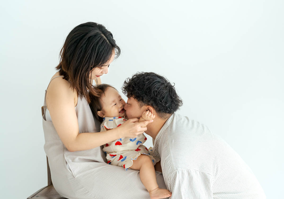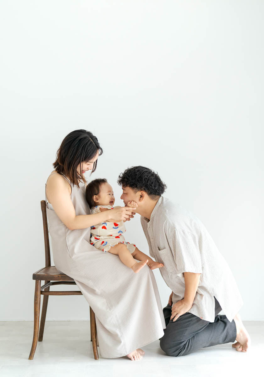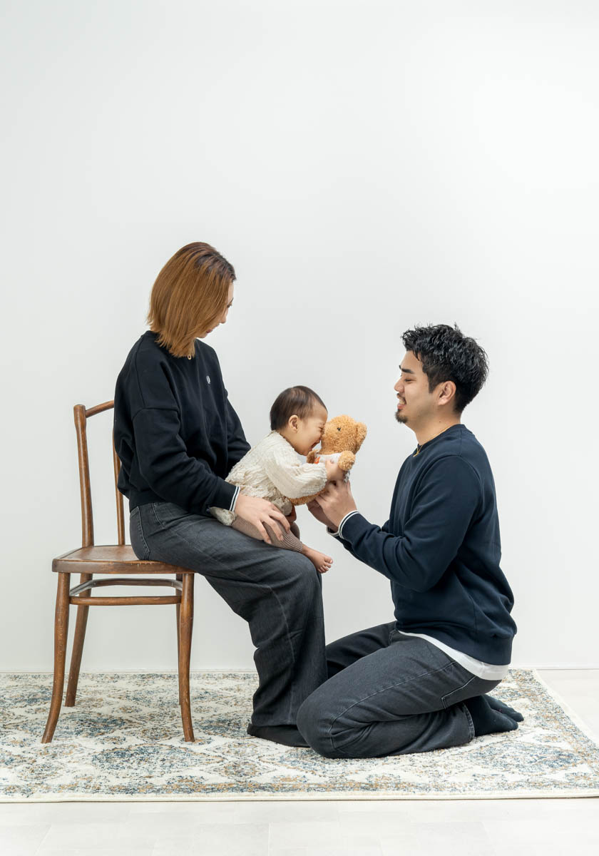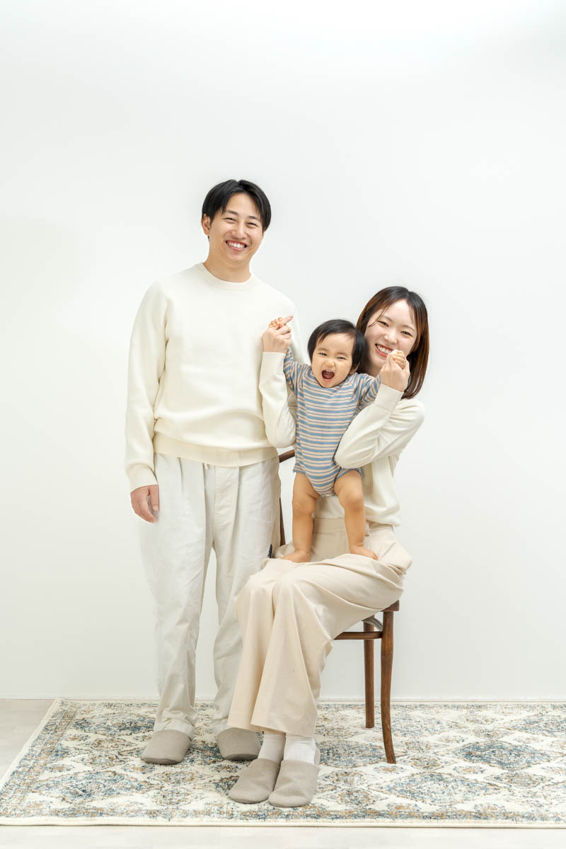 ※GoPhotoスタジオは家族写真のスタジオです、お子様のソロショットも撮影しますが、パパママも一緒に写って頂きたいと思いますし、パパママが横にいるときが一番良い表情をしてくれます。