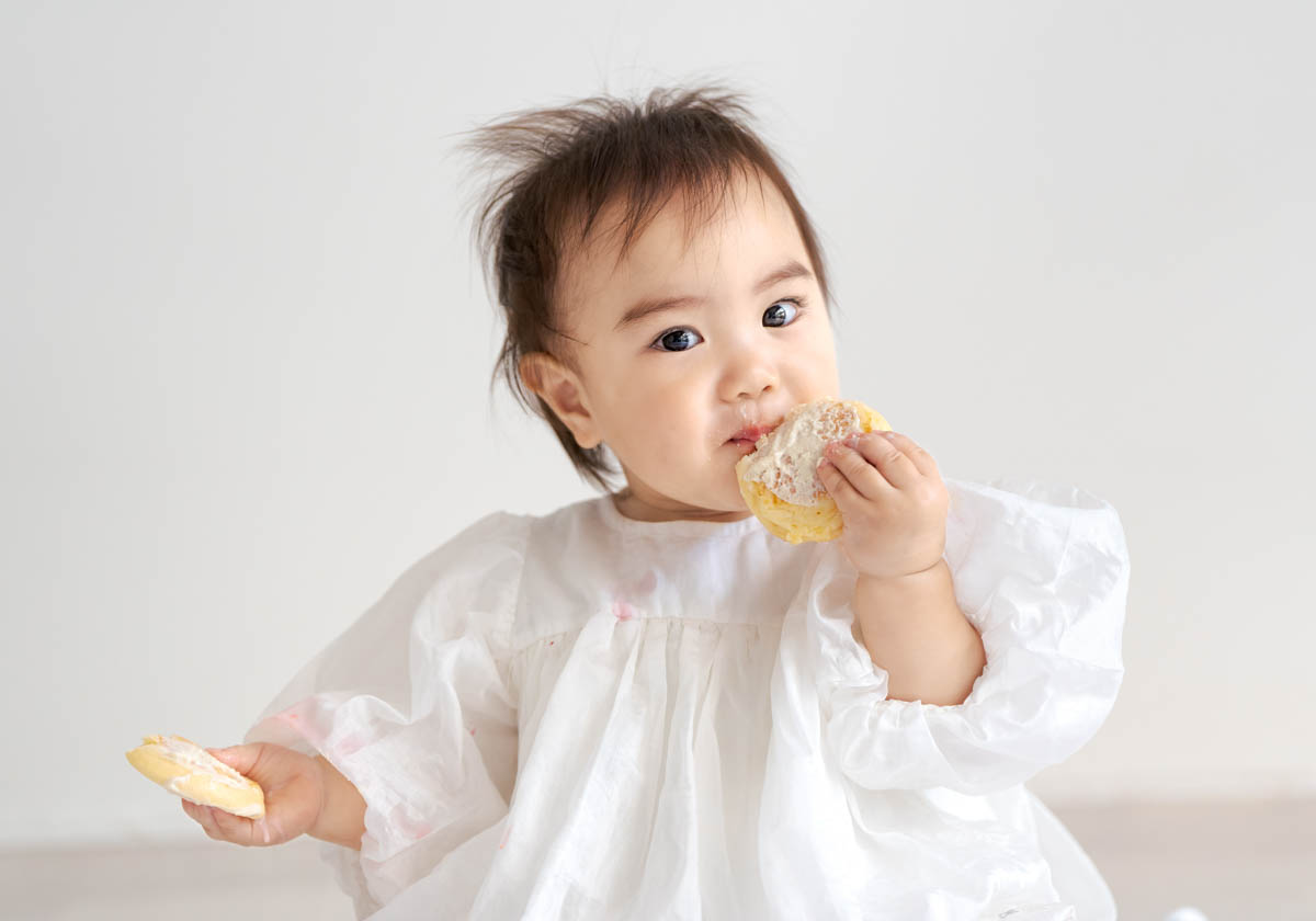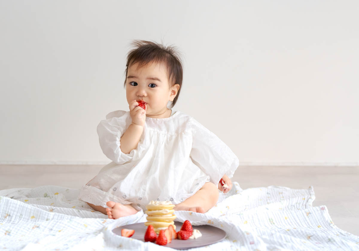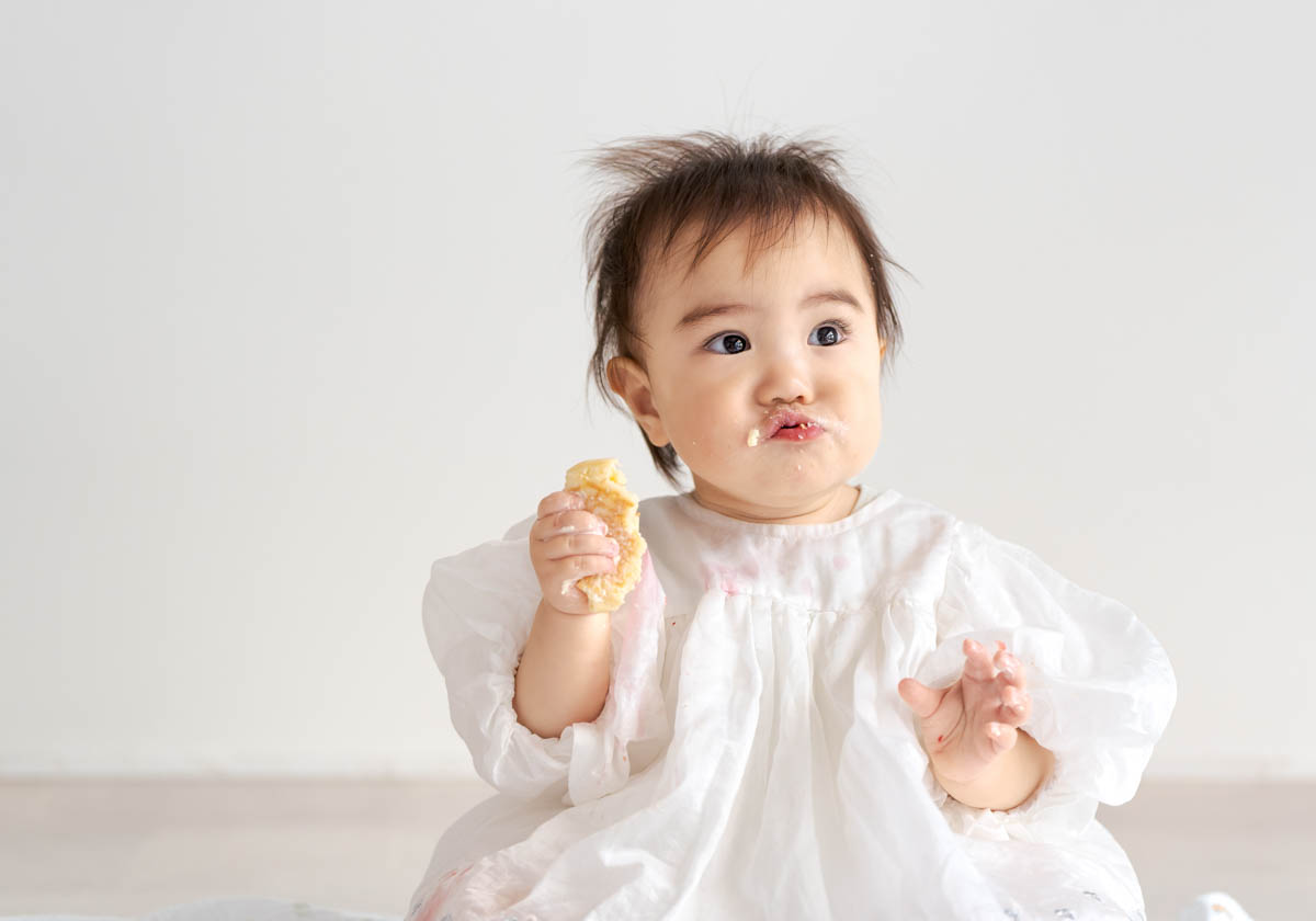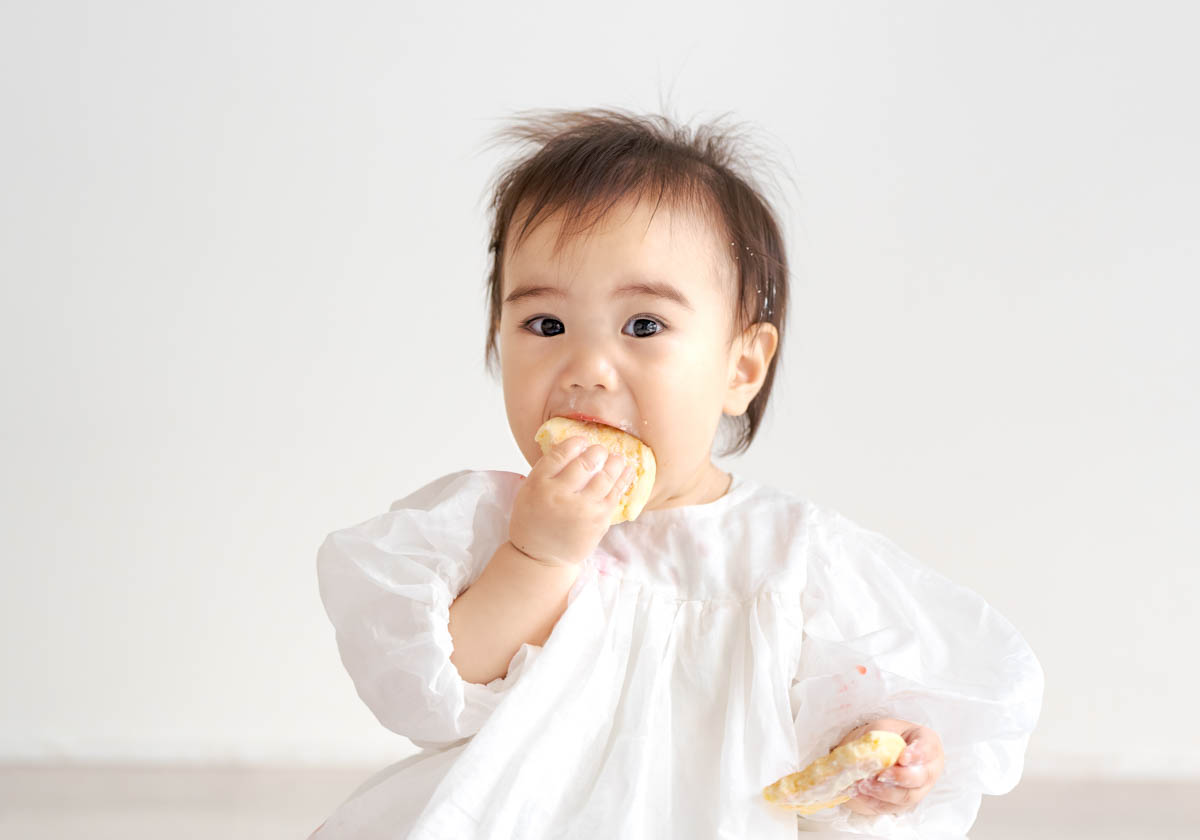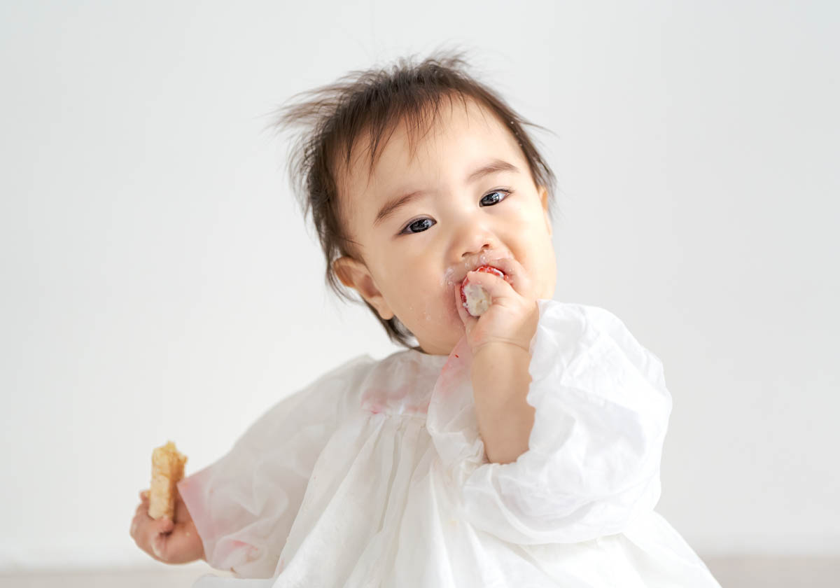一方で、食べられるものが増えてくることで、楽しいよりも空腹が勝つこともあります。そのため撮影中おやつを食べると、にこにこ元気にになる子も多くいます。食べることが好きな子は食べ物の撮影もとってもかわいいです。