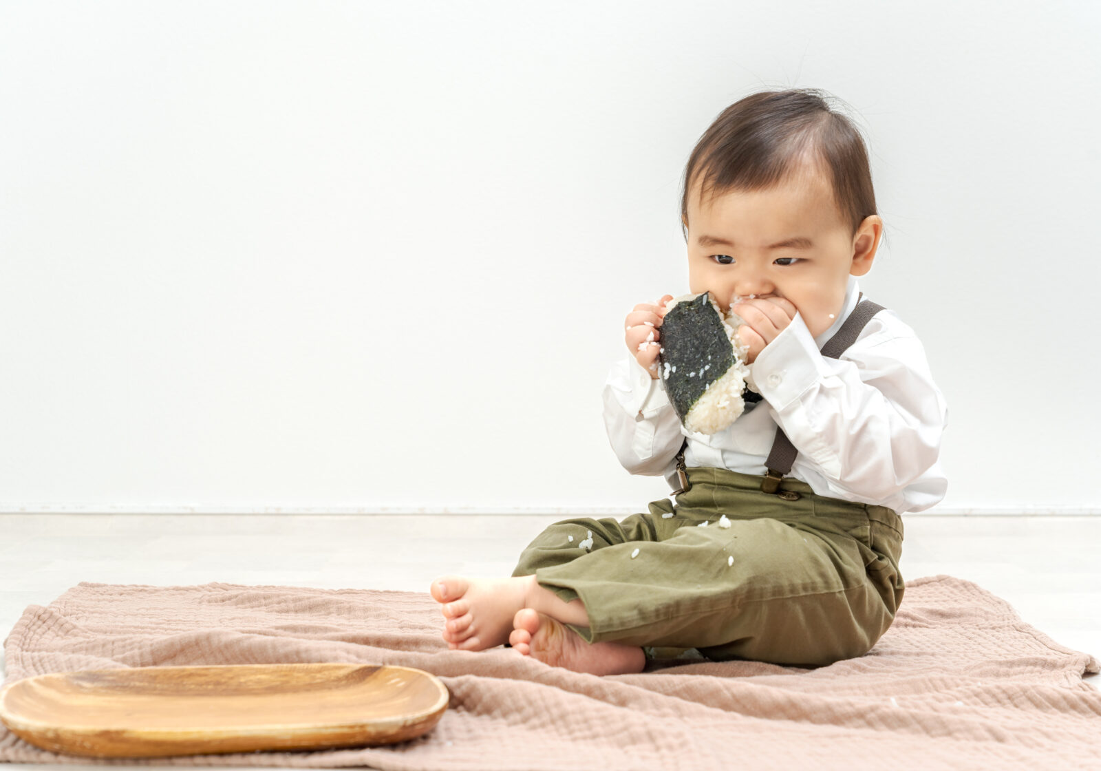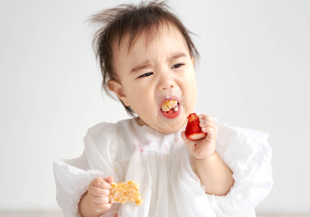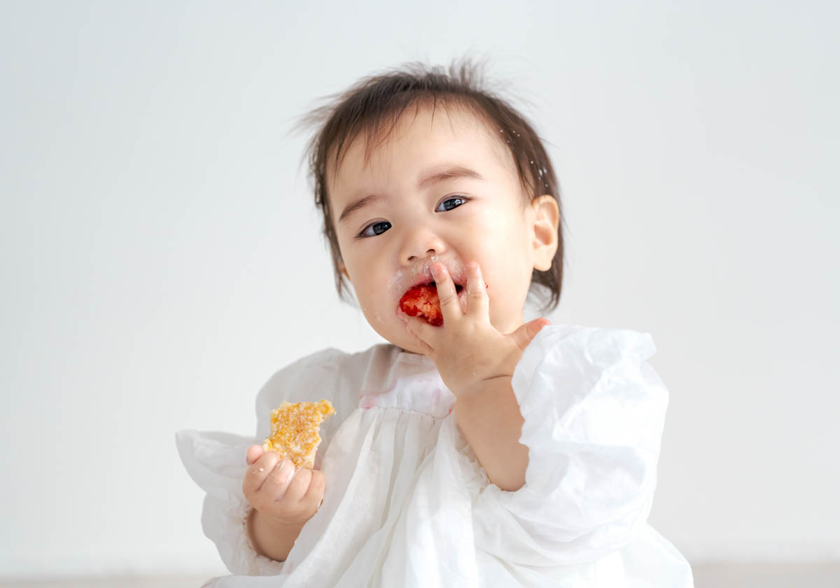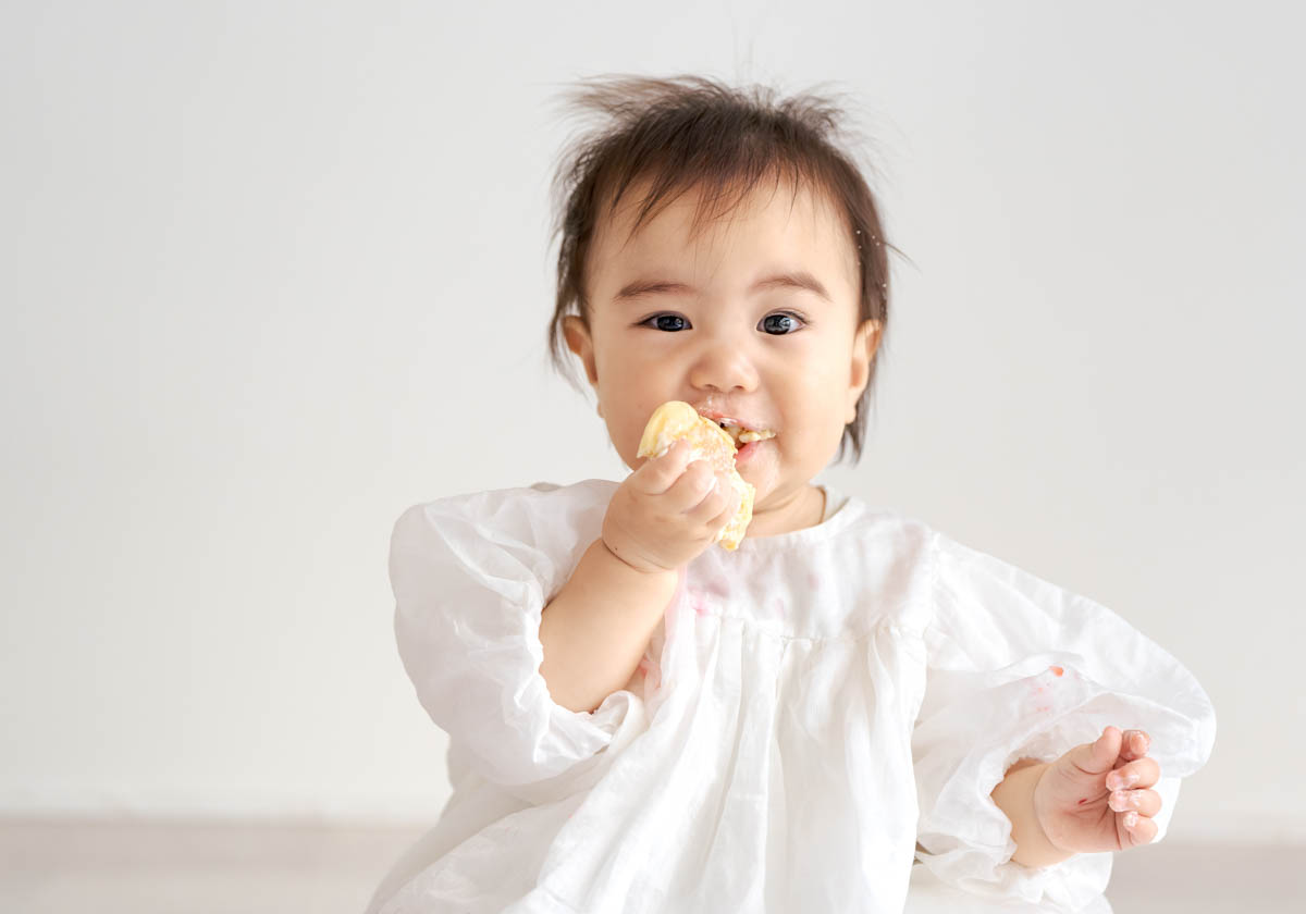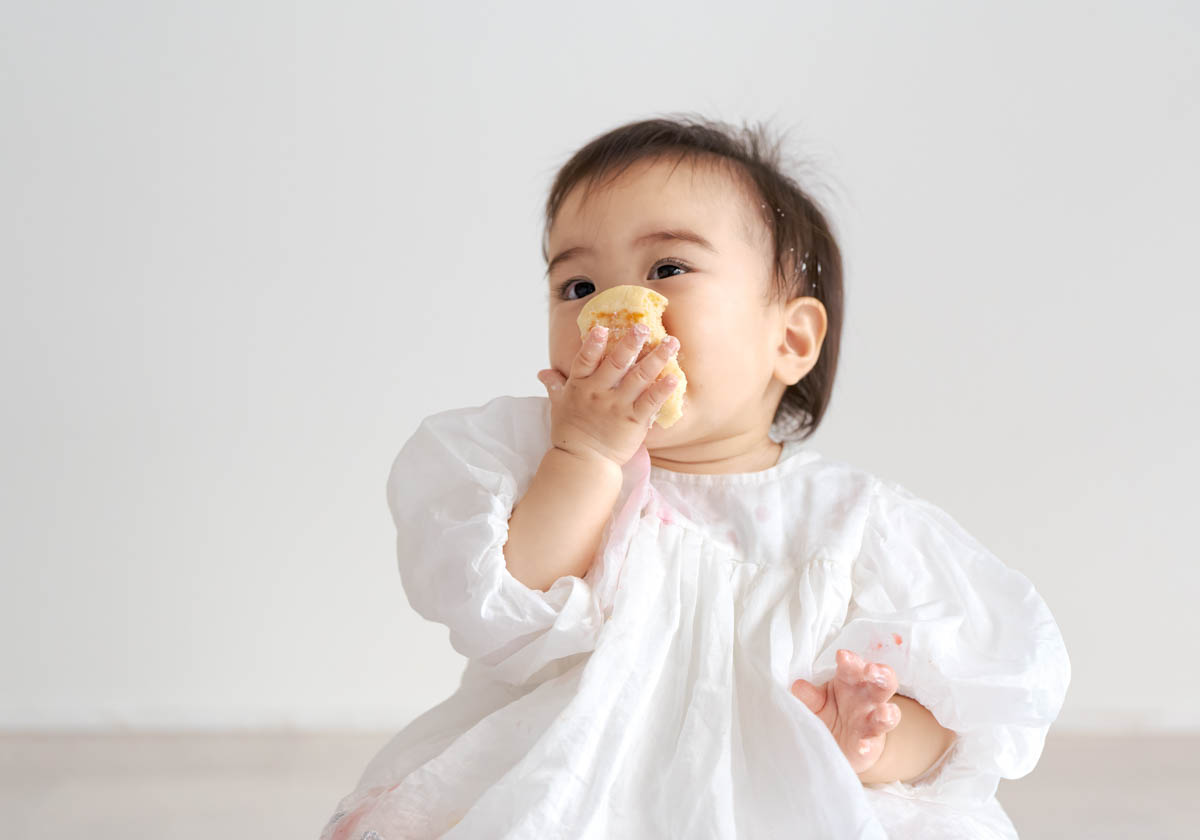 一方で、食べられるものが増えてくることで、楽しいよりも空腹が勝つこともあります。そのため撮影中おやつを食べると、にこにこ元気にになる子も多くいます。食べることが好きな子は食べ物の撮影もとってもかわいいです。