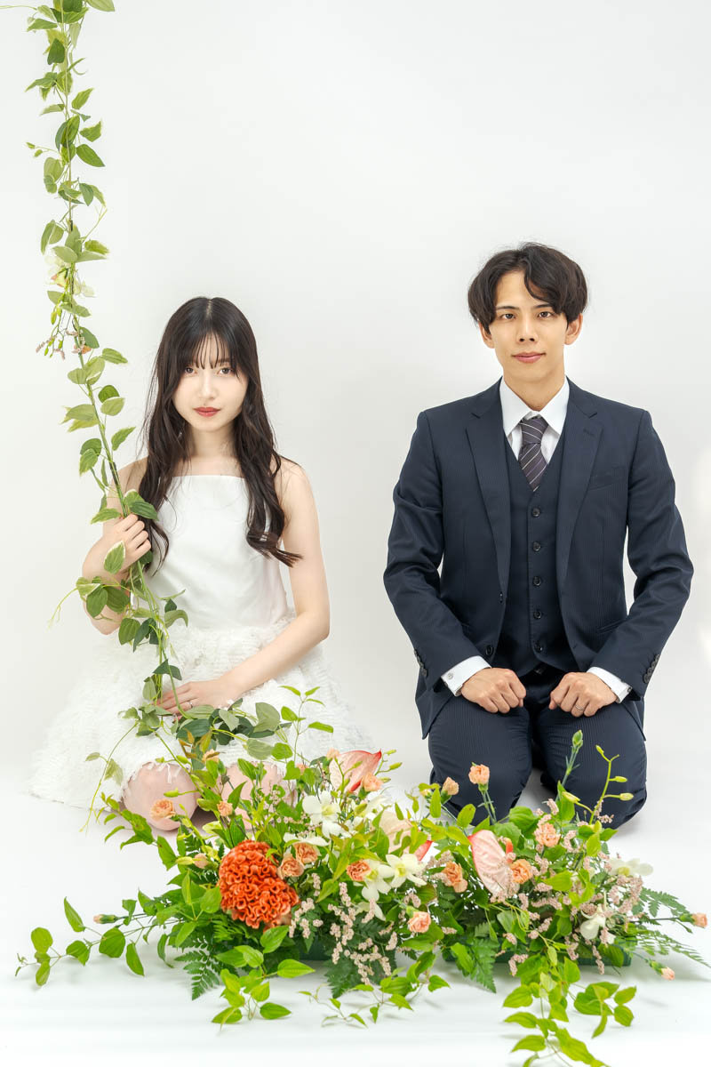 最初はお花なしで、撮影をはじめます。お子様の動きを観察してから、お子様が倒しにくいようにお花を設置し、その後動きや興味に合わせて配置をアレンジしていきます。