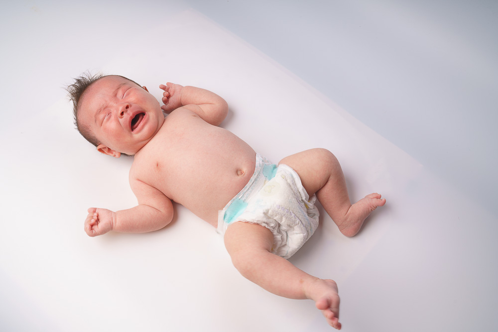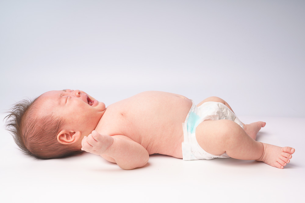 赤ちゃんを寝かしつけ、特定のポーズをとらせて撮影します。表情は基本的に寝顔がメインです。