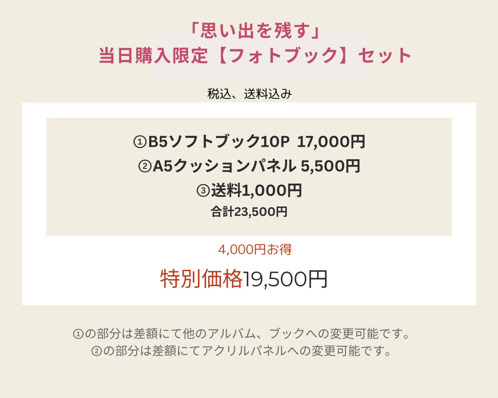 - 撮影・リラックスタイム・お支払い時間を含みます