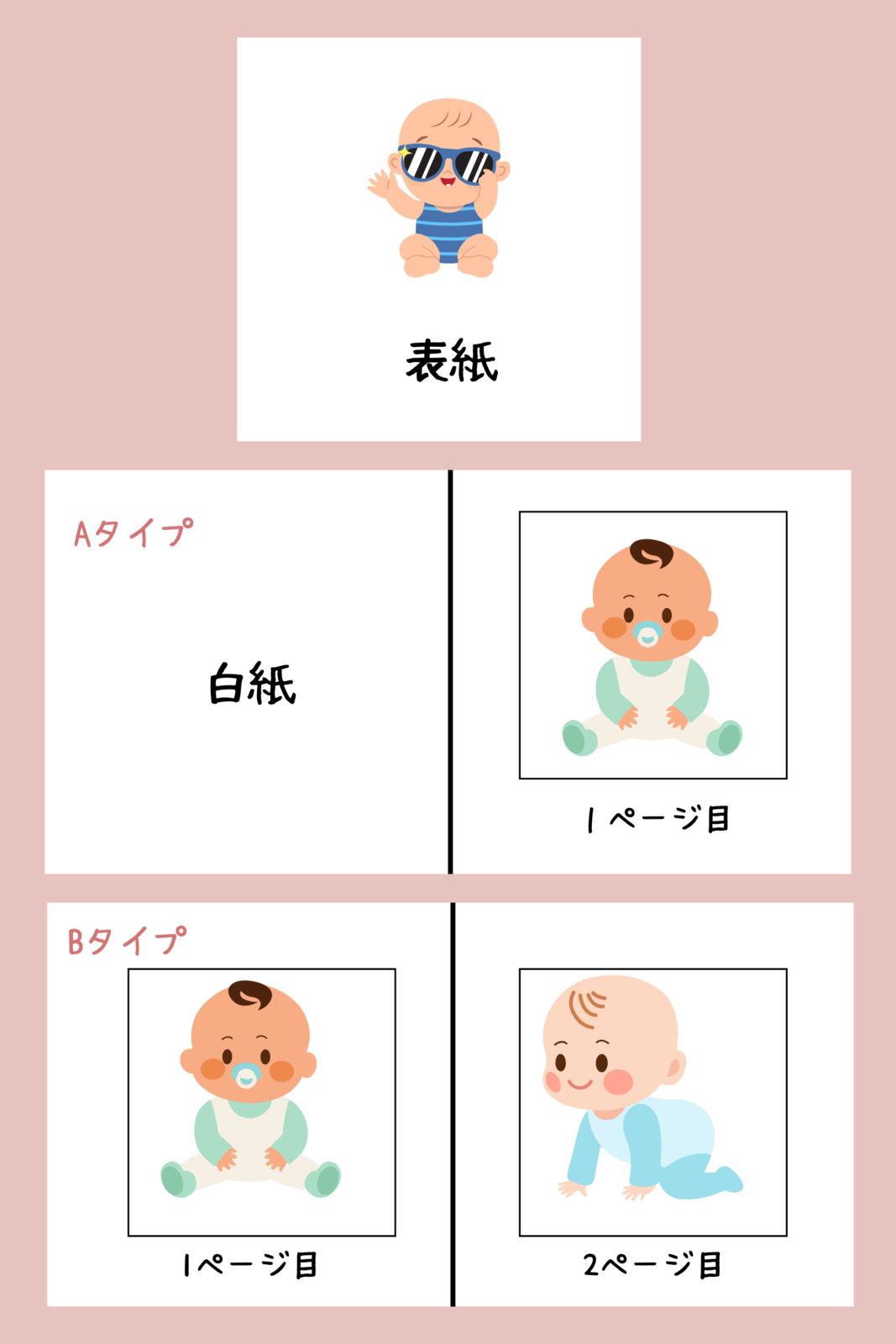 Aタイプは表紙をめくったあと、左が白紙、右が1ページ目となります。
